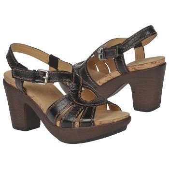 Here is a nice sandal by Naturalizer. It has a cozy liner combined with a rocker forefoot and stable shank; all of this makes for a good recipe!