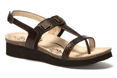 I’m trying my best to find sandals to post which are without a higher heel. This line by the walking company makes a cork foot bed which is stable and with a fairly good arch support. The problem is finding a sandal that meets more of a stylish standard. For those of you who are interested, the Walking Company has very nice people in their stores who are helpful. You can also order online, of course.